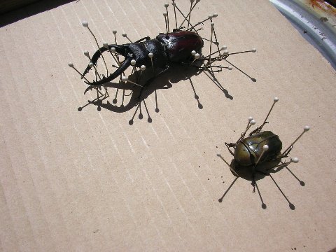 途中でカナブンの死体を見つけたので、ついでに標本にします。